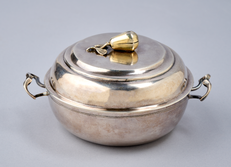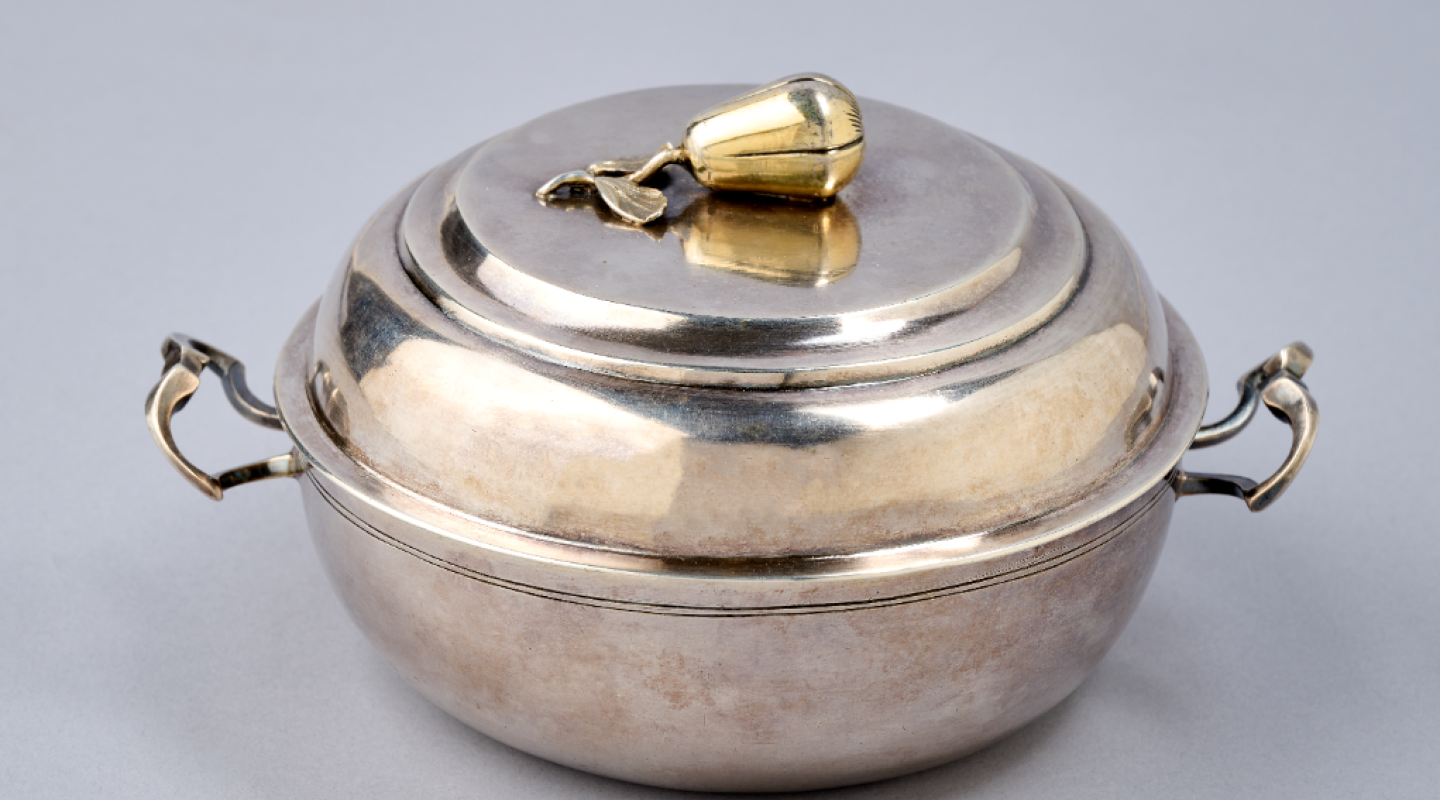 Seit jeher gab es Gelegenheiten, bei denen Speisen und auch warme Mahlzeiten portionsweise in Behältern to go transportiert werden mussten. Während jedoch beispielsweise die Versorgung der Feldarbeiter/- innen aus naheliegenden Gründen nicht zu einer Entwicklung von Prunkgerät führte, war die Geburt eines Kindes sehr wohl ein solch wichtiger Anlass, der aus einem praktischen Gebrauchsgegenstand ein schönes Geschenk von bleibendem Wert werden ließ. Die vom Nationalmuseum neu erworbene, prestigeträchtige Godenschüssel eines Luxemburger Silberschmieds dokumentiert diese heute nahezu in Vergessenheit geratene Tradition des 18. Jahrhunderts.