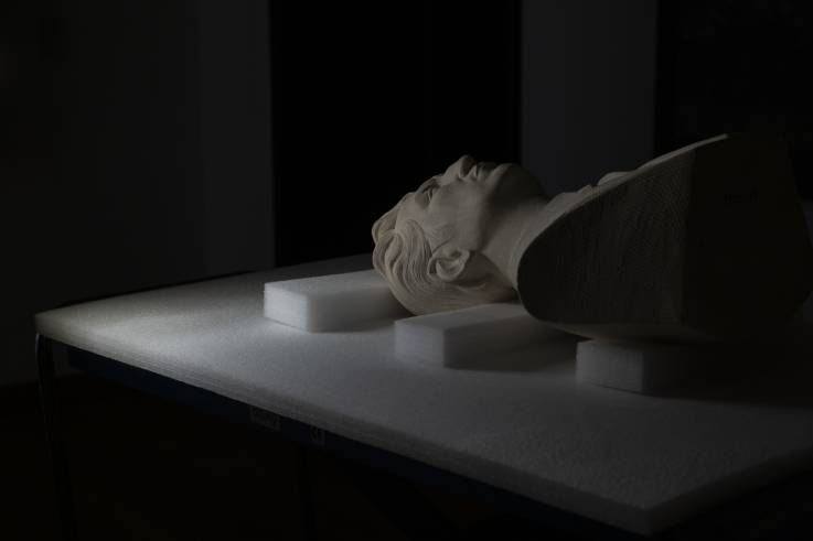 We needed to experience the 3D scanning process firsthand to assess how to move forward with this technology. We decided to collaborate with In-visible, a local scanning provider, to scan seven sculptures currently on show at the Nationalmusée um Fëschmaart. Each sculpture presented its own unique challenges, and we learnt a lot in the process. The method used by In-visible is called photogrammetry. In simplified terms, it involves taking multiple photographs of an object while also recording data about the position of the specific part of the object being photographed. Afterwards an algorithm is used to create a 3D model from the photographs according to their position.