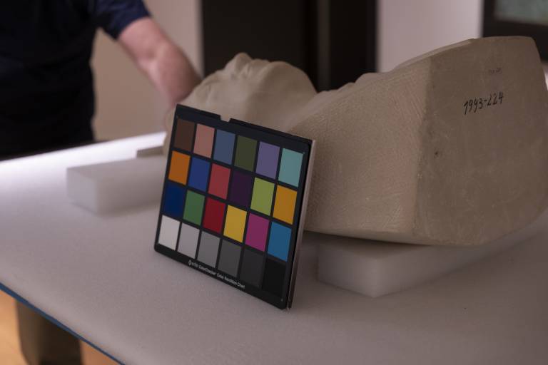We encountered two difficulties during the scanning process that we will have to take into account for future projects. The first is handling the objects themselves. The sculptures we chose are made of marble and other kinds of stone and are therefore very heavy. Photographing them from all sides meant they had to be lifted with the help of our team of registrars. We weren’t able to scan the back of a bas-relief from the archaeology section, for example, because that would have involved taking it out of its fixture. In other cases, the bottom of the pedestal wasn’t scanned. Had we wanted to document those parts of the sculptures for a scientific scan, we would have needed more resources.