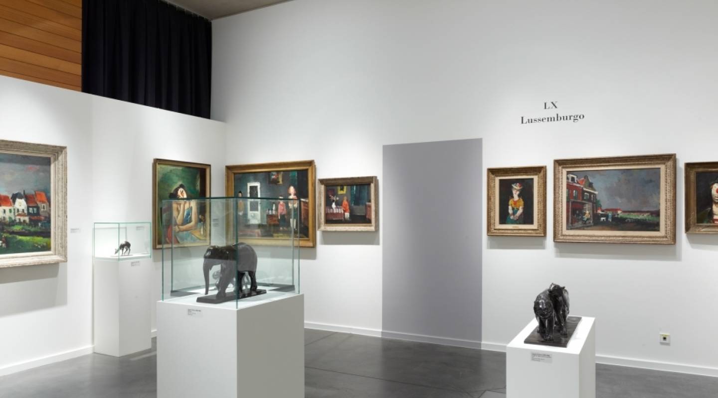 En 1956, le Grand-Duché de Luxembourg y est invité pour la première fois, à une époque où le Luxembourg commence à s'émanciper sur la scène politique inter- nationale. Conscient de la compétitivité qui règne à Venise, Joseph-Émile Muller (1911-1999), le commissaire en charge de la section luxembourgeoise et une des figures emblématiques de la scène artistique luxembourgeoise, décide de montrer quinze toiles de Joseph Kutter (1894- 1941) et sept sculptures d'Auguste Trémont (1892-1980), artistes à la renommée établie et dont Muller estime qu'ils peuvent se défendre à l'étranger.