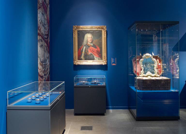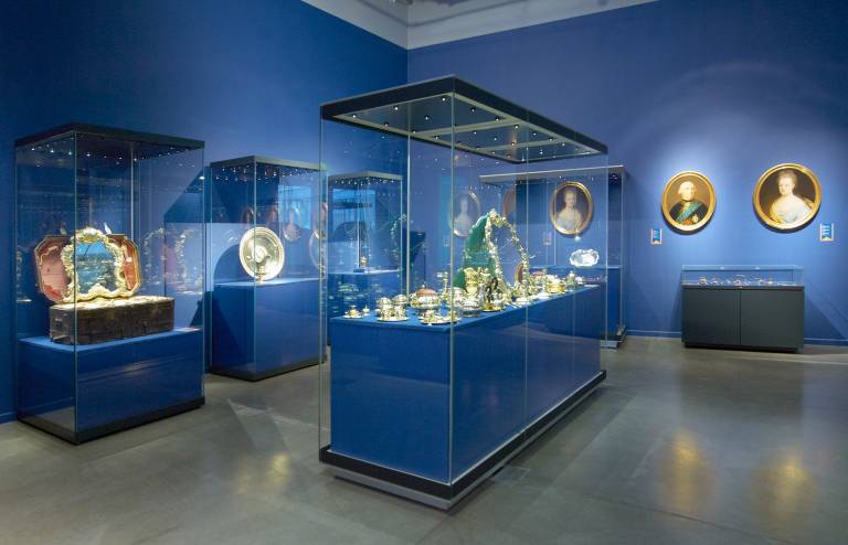 Des pièces exceptionnelles, comme le Saint- Georges terrassant le dragon ou la Rose d'or remise par le Pape Pie XII à la Grande-Duchesse Charlotte en 1956, auxquels s'ajoutent des bustes et des portraits de membres illustres de la famille princière, rendent tangible l'histoire mouvementée de la maison régnante et livrent un aperçu inattendu d'une collection européenne importante.