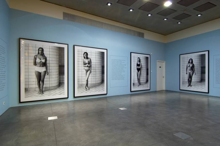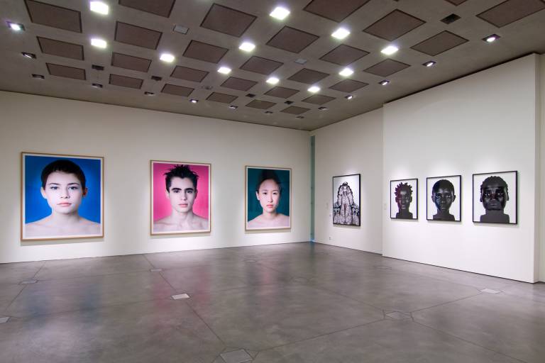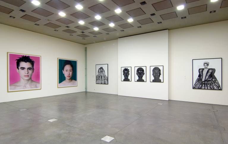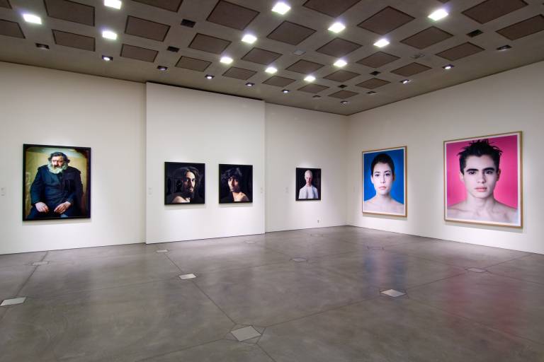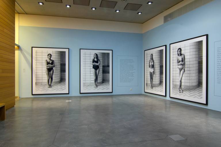 Les photographies exposées, certes, appartiennent toutes au genre du portrait, mais d'emblée l'équilibre corps / modèle est perturbé par la frontalité et le surdimensionnement des images.