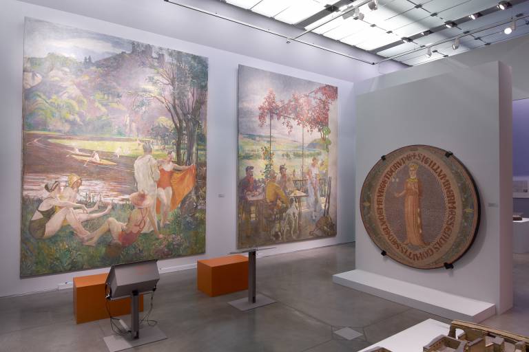 Que reste-t-il des participations nationales, créations éphémères par définition, dans un pays non organisateur comme le nôtre ? Avant tout une documentation écrite et une iconographie conservées dans les archives et les bibliothèques, plus rarement des œuvres et des objets d'art récupérés ou rachetés par les musées et des particuliers et, pour les évènements récents, divers films et témoignages oraux. Le MNHA a la chance de posséder plusieurs « vestiges » qui comptent parmi les plus spectaculaires qui soient, à savoir une série de tableaux de grandes dimensions du pavillon de Paris 1937 et une statue monumentale destinée au pavillon de New York 1939. Mais au-delà des objets et des expériences vécues, l'exposition pose la question de l'image que le pays a voulu donner de lui-même de 1851 à 2010.