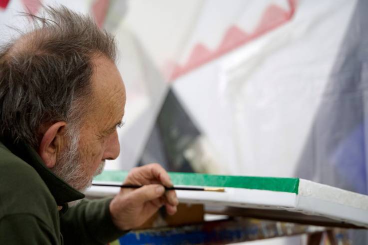 Noël Dolla est espiègle comme le sont les grands enfants. Animé d’un éternel feu intérieur, à bientôt 80 ans, l’artiste poursuit sa route, opiniâtre et ferme, contrant le vent mauvais des diktats de la bienpensance. Alerte, il perpétue l’esprit révolutionnaire du mouvement Supports/Surfaces qui l’a vu naître, investissant la scène artistique avec engagement, attentif au temps présent. Entretien avec l’un des derniers des mohicans à contre-courant.