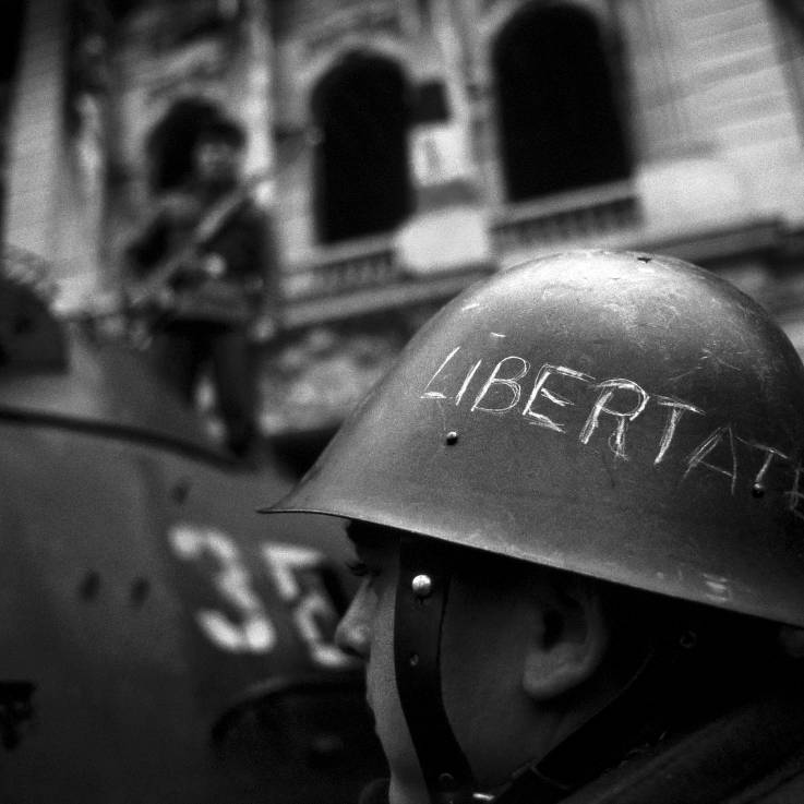 Retour à la Révolution: quand elle éclate vous avez 20 ans, l’âge pratiquement d’être convoqué au service militaire. Vous sortez dans la rue avec votre appareil photo et quarante rouleaux de films en poche. Racontez-nous comment s’est déroulée cette journée.